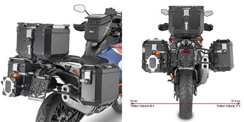 Zestaw: Kufry boczne asymetryczne GIVI Trekker Outback EVO smart do BMW R1300GS - Komplet kufrów bocznych z zamkami i stelażem ( Srebrne )